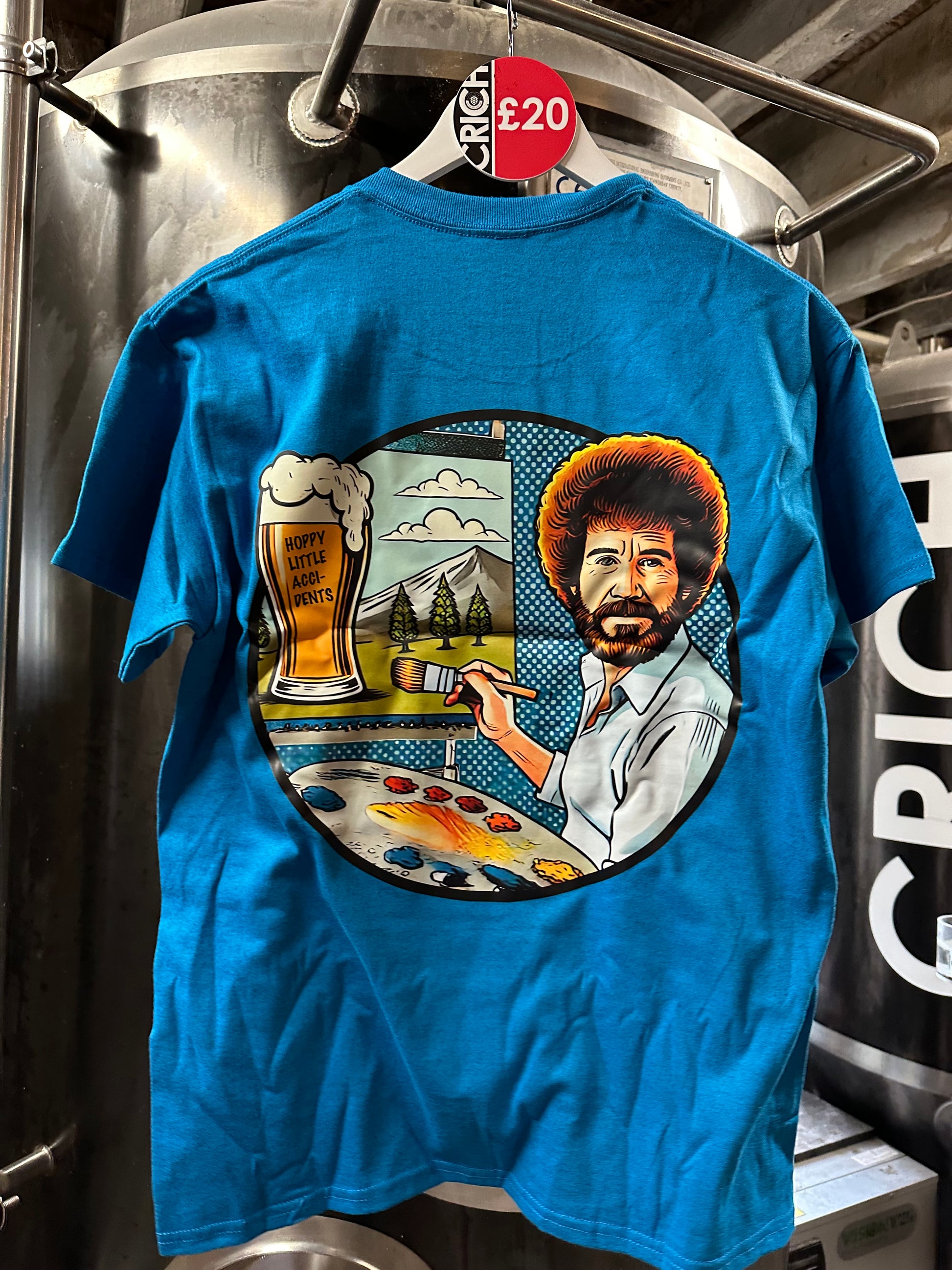 Blue T Shirt with CBC logo on the chest, and Hoppy Little Accidents design printed on the back. DTG print on high quality Gildan T Shirt.